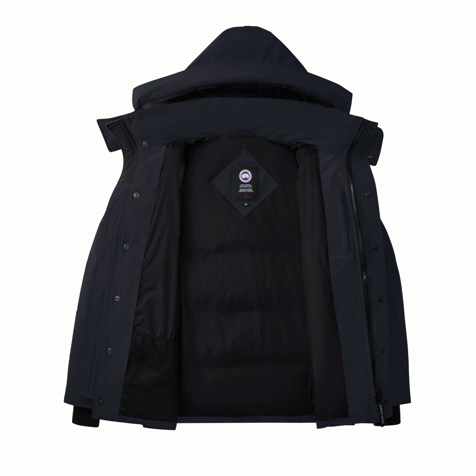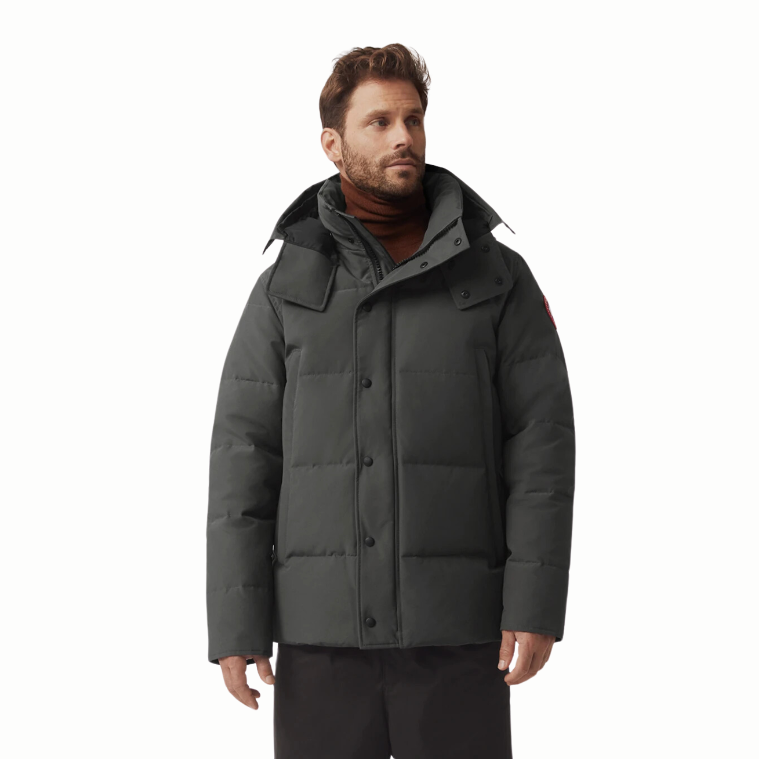 The Wyndham Parka is a slim-fitting, hip-length down jacket designed for cold weather. It features a heavy-duty two-way zipper covered by a snap-closure storm flap, and a removable, down-filled hood for adaptability in harsh conditions. The Arctic Tech® shell fabric (83% polyester / 17% cotton) is water-repellent and durable. The insulation is 625-fill-power responsibly sourced duck down that provides warmth without being overly bulky. Rib-knit cuffs help keep the cold out, while multiple pockets — including fleece-lined hand-warmers and internal mesh pockets — offer practical storage. According to Canada Goose, this model runs large, so many recommend sizing down.