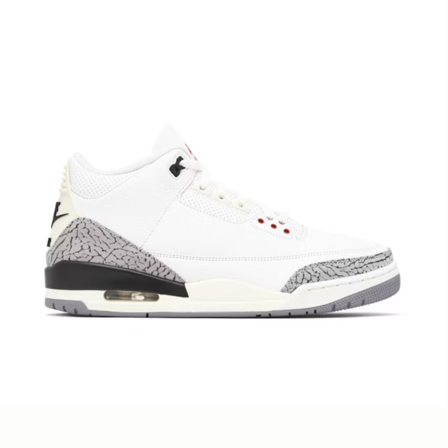 The Jordan 3 Retro “White Cement Reimagined” (2023) breathes new life into one of the most iconic AJ3 colorways, combining classic elements with contemporary design updates. This edition retains the legendary white leather base, accented with the signature cement grey elephant print overlays on the toe and heel, while introducing modern refinements in texture, materials, and finish for a premium, elevated look.