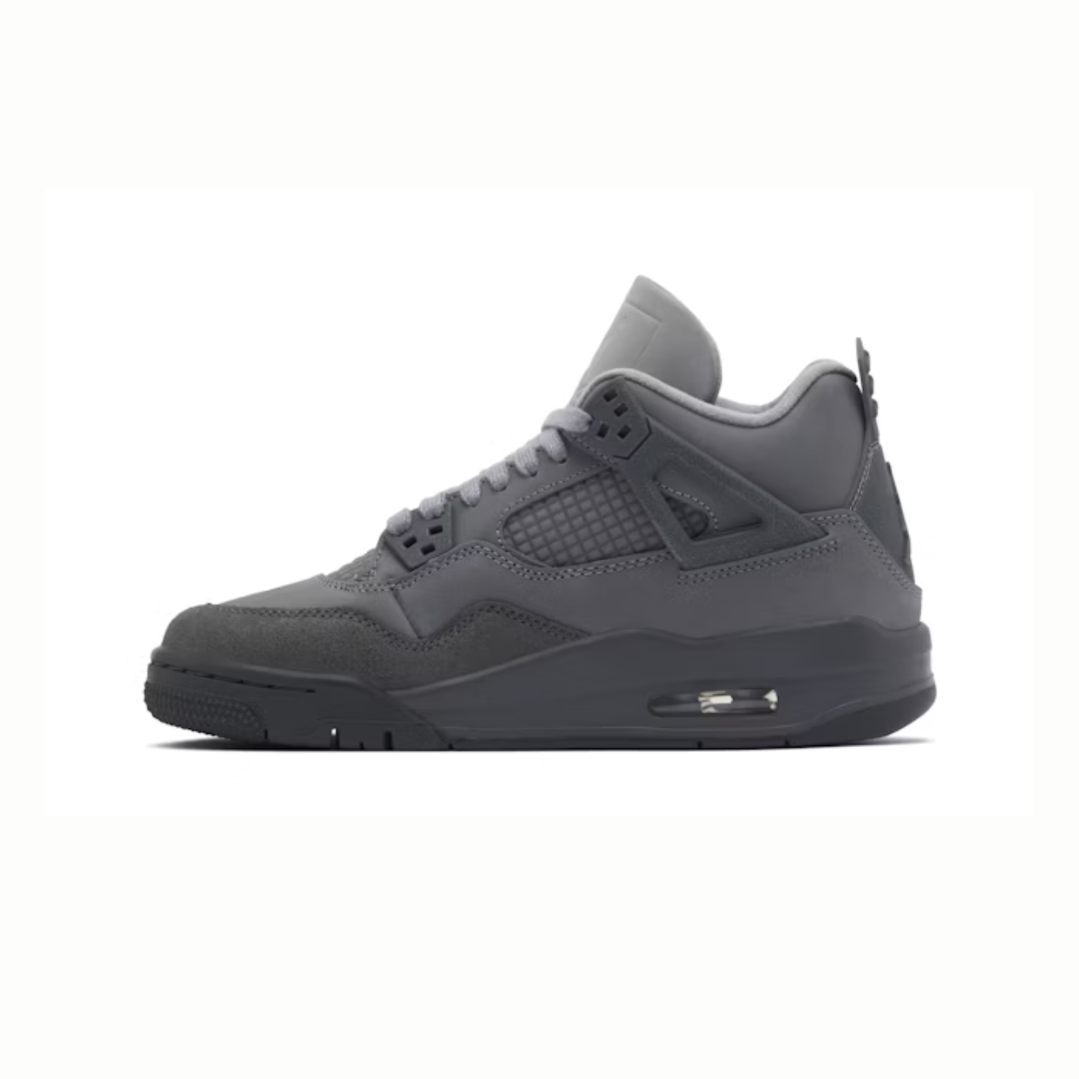 The upper features a smooth Wolf Grey leather base, complemented by darker Cement Grey accents across the wings, eyelets, and heel tab. Subtle speckling on the structural TPU elements pays homage to the classic Jordan 4 “White Cement,” while the muted, tonal palette gives this pair a sophisticated, minimalist character. Black detailing on the mesh, tongue tag, and heel Jumpman adds depth, creating balanced contrast without overpowering the shoe’s clean design.