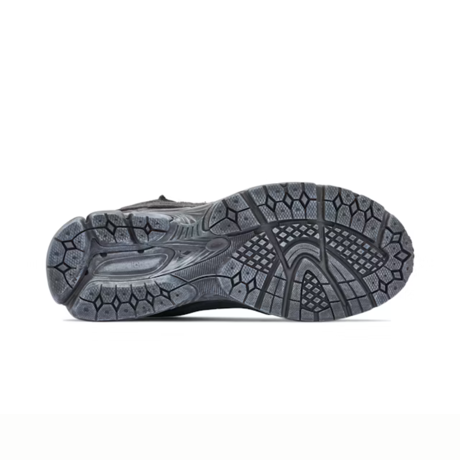 The upper features a blend of premium suede, mesh, and synthetic overlays in muted grey tones with subtle reflective accents, giving the sneaker a layered, multidimensional look. Protective overlays add structure and stability while maintaining a lightweight feel. Signature New Balance branding appears on the tongue, side, and heel, highlighting the model’s iconic lineage.