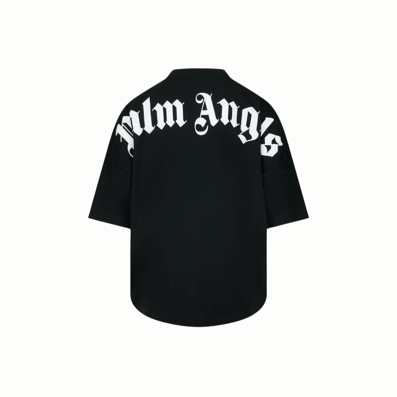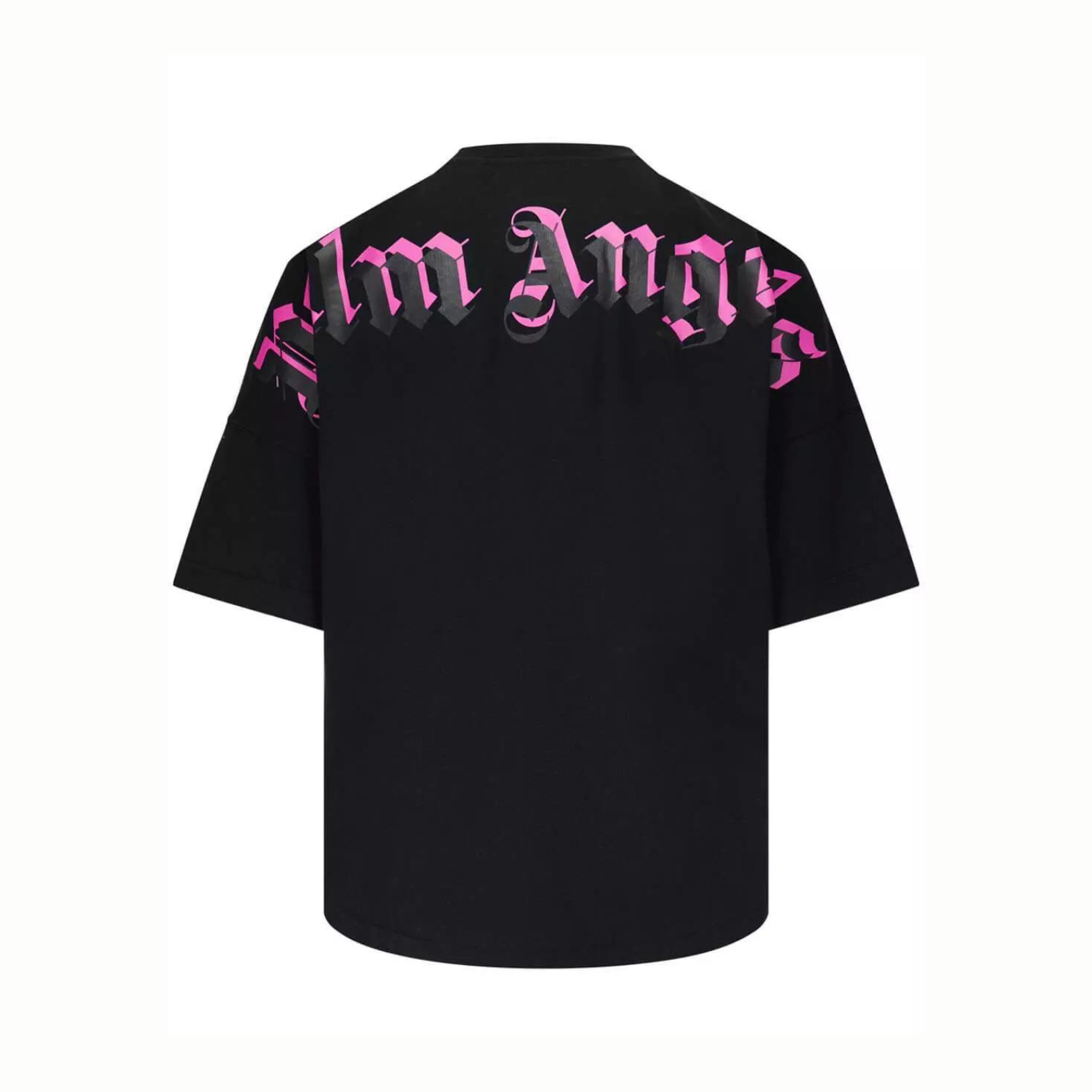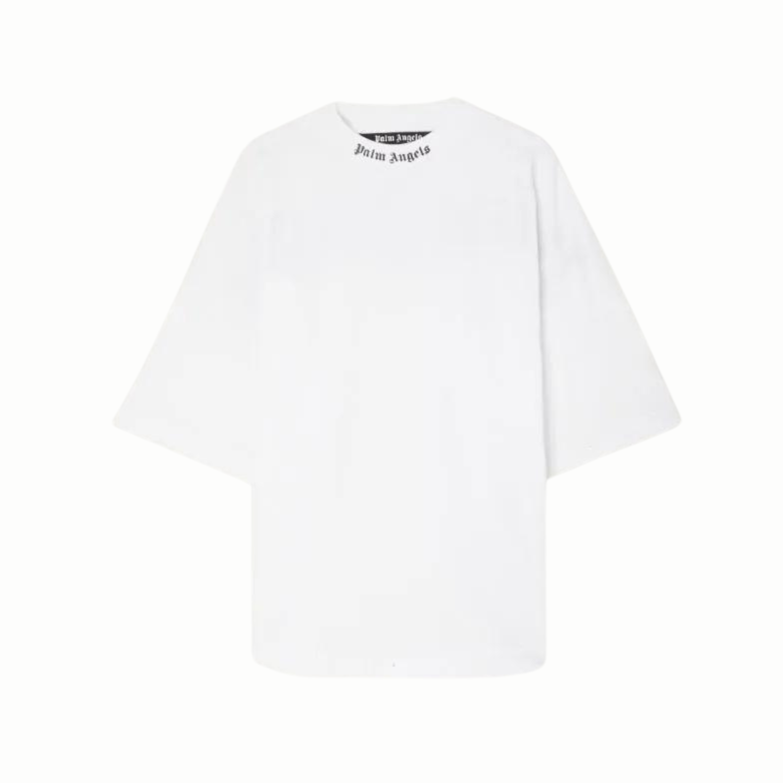 A streetwear staple, this Palm Angels Classic Logo T‑Shirt is crafted from 100% lightweight cotton and features the brand’s signature Gothic script logo printed on the front and back. The oversized, boxy cut gives it a relaxed fit with dropped shoulders, while the ribbed crew neck adds structure. Made in Italy, it effortlessly blends laid-back comfort with high-end edge.
